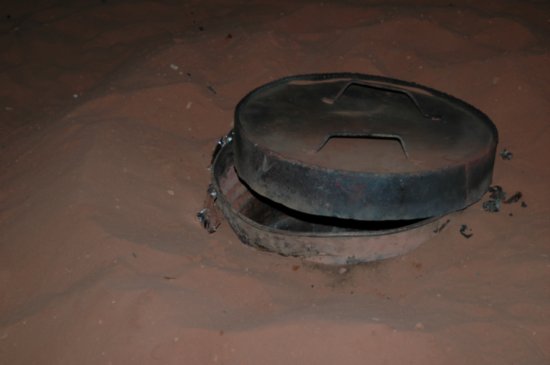 We pulled back into camp expecting to see the six other guests supposedly spending the night, but it was still just us.  We settled in by the fire, mesmerized by its light, and relaxed while sipping Bedouin tea.  After some time passed, Mahmoud asked, “You ready for dinner?  Come and see.”  We trundled out into the cold and watched several men dig a large, steaming oven out of the earth, where our chicken dinner had been cooking in the dirt for hours.  Turns out, chicken cooked underground, along with fresh cucumber and yogurt and rice, is simply delicious.