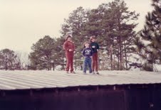 I remember visits with Dana and Rachel at our Grandma and Grandpa Todd’s house in East Bend, North Carolina, a small town of five hundred people plunked down in the middle of rows and rows of corn and tobacco fields.  The red brick Southern Baptist Church loomed large just a few steps down the road.  I can still taste Grandma’s home cooking; the crackling fried chicken, green beans with bacon, pecan pie, all rapidly consumed by a swarm of cousins buzzing around Grandma’s dinner table like honeybees at the hive.  Of course, no Southern meal would be complete without topping it off by guzzling the sweet nectar of fluorescent green Mello Yello.  I remember an afternoon after all of the cousins were flying high from indulging in this pure sugar heaven, Dana convinced us not just to explore Grandpa’s slightly dilapidated chicken coop outside, but to climb to the top of the roof and run around, just to see what we could see.  Who says no to Dana?  Not us.